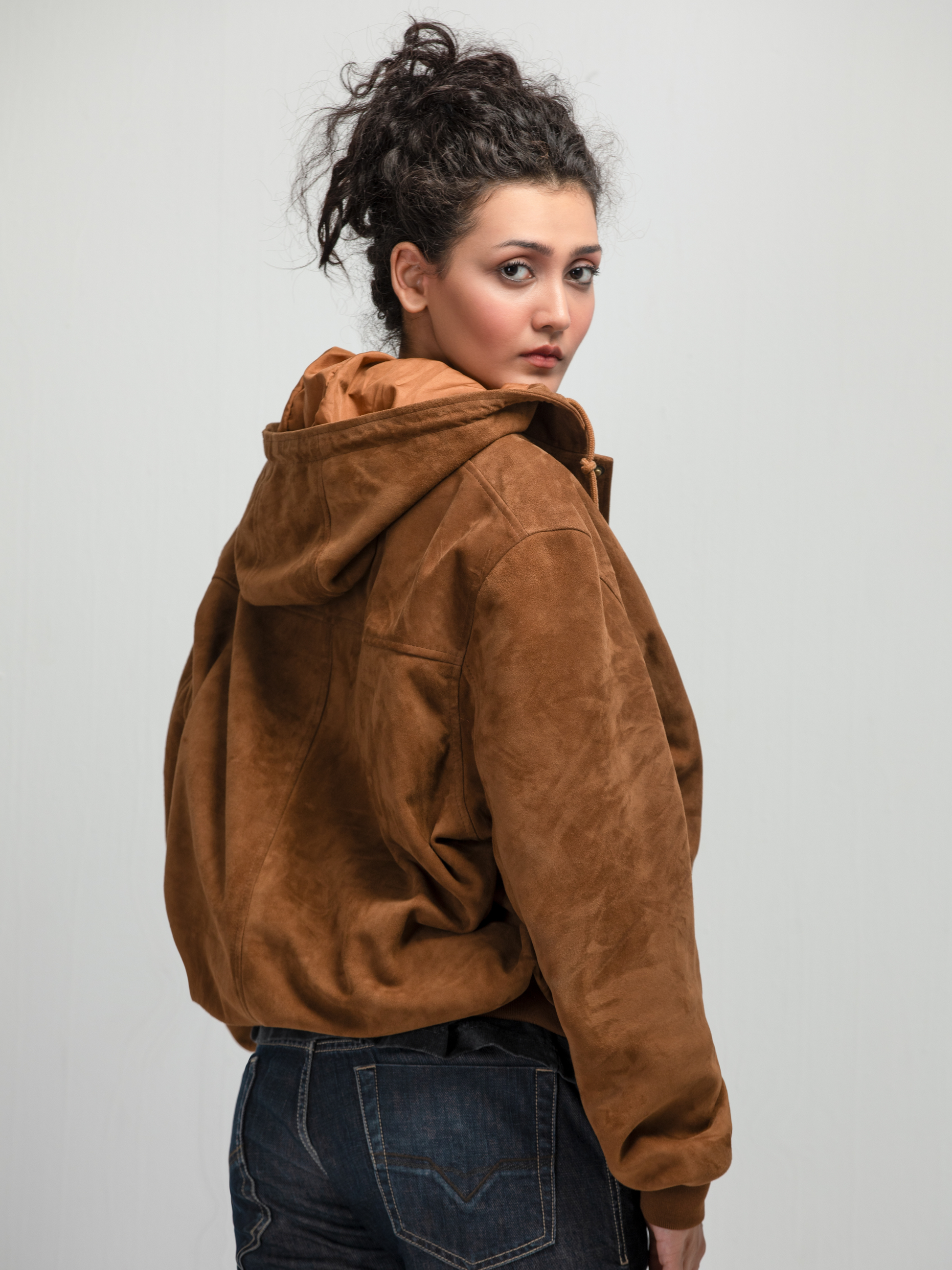 جاكيت بغطاء رأس من جلد السويد البني الناعم، مصمم للدفء والراحة والأناقة اليومية. يتميز بإغلاق بزر كبس، وجيوب أمامية، وشارة شعار RoohTeen صغيرة. تصميم أنيق وعصري، يتناسب بسهولة مع أي إطلالة شتوية.
