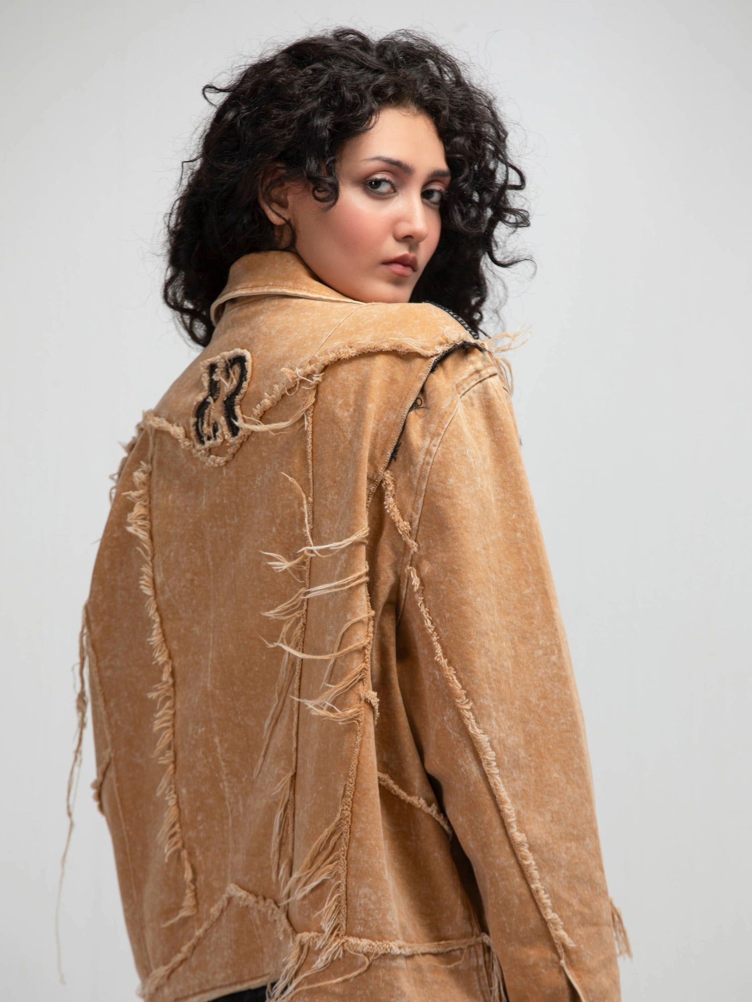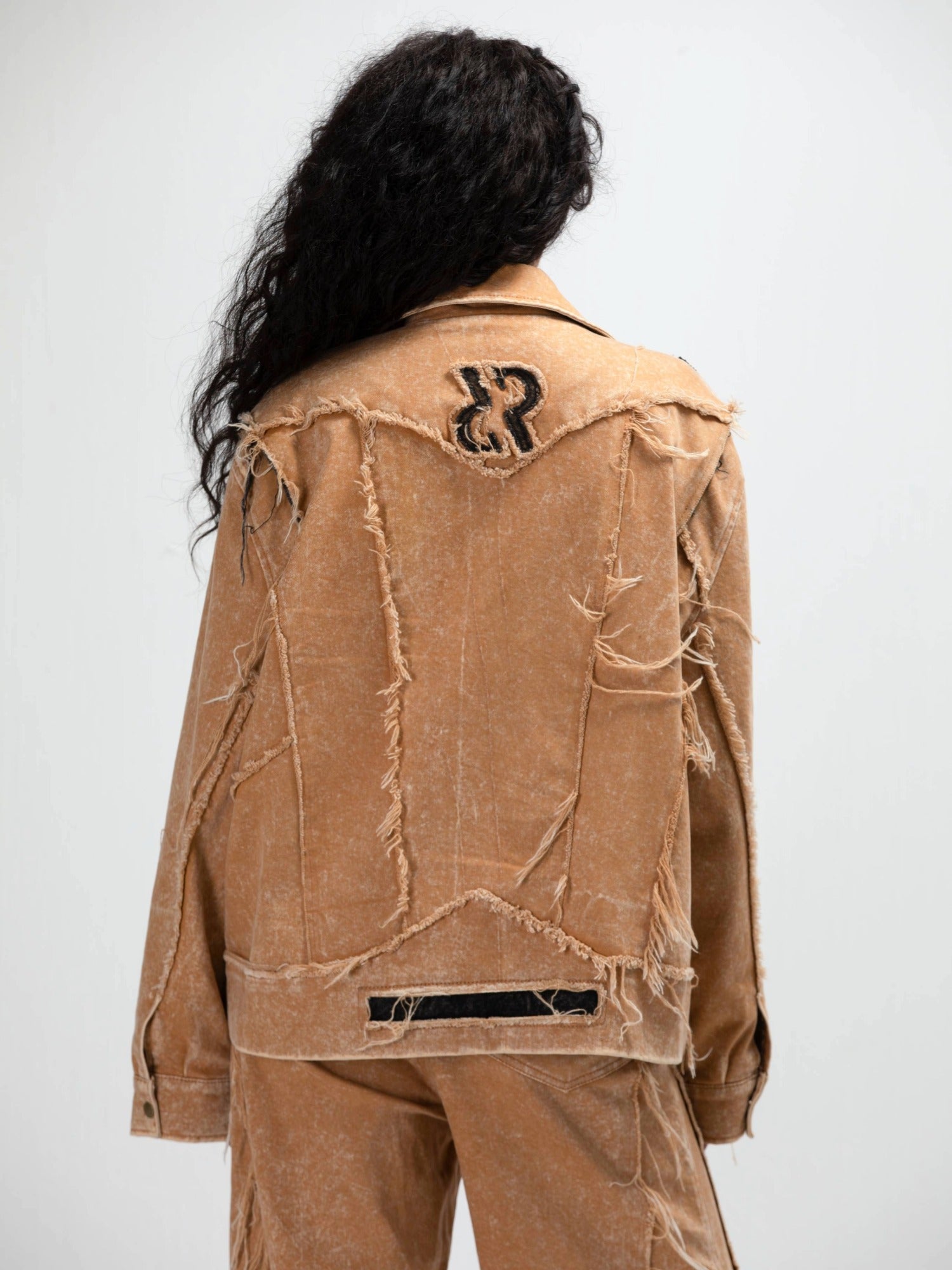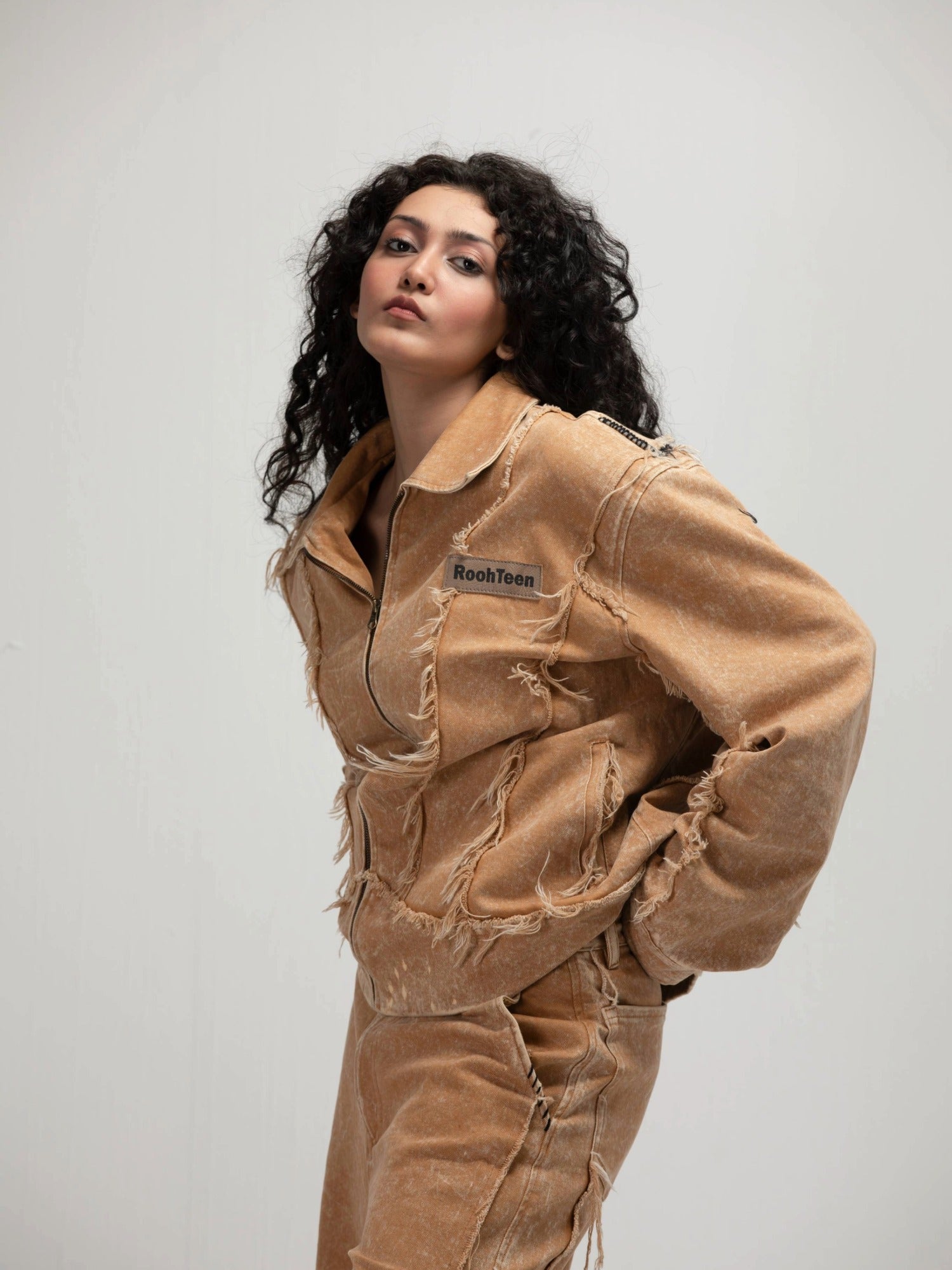 جاكيت جينز بلون الخردل، مُغسول بالحمض، بتفاصيل ممزقة ودرزات ثقيلة مهترئة، لإطلالة عصرية جريئة. يتميز برقعة شعار RoohTeen جريئة في الخلف، وبطاقة اسم في الأمام لإضفاء لمسة مميزة على الماركة. مصمم بقصة مريحة مع لمسة نهائية مغسولة بلمسة عتيقة.