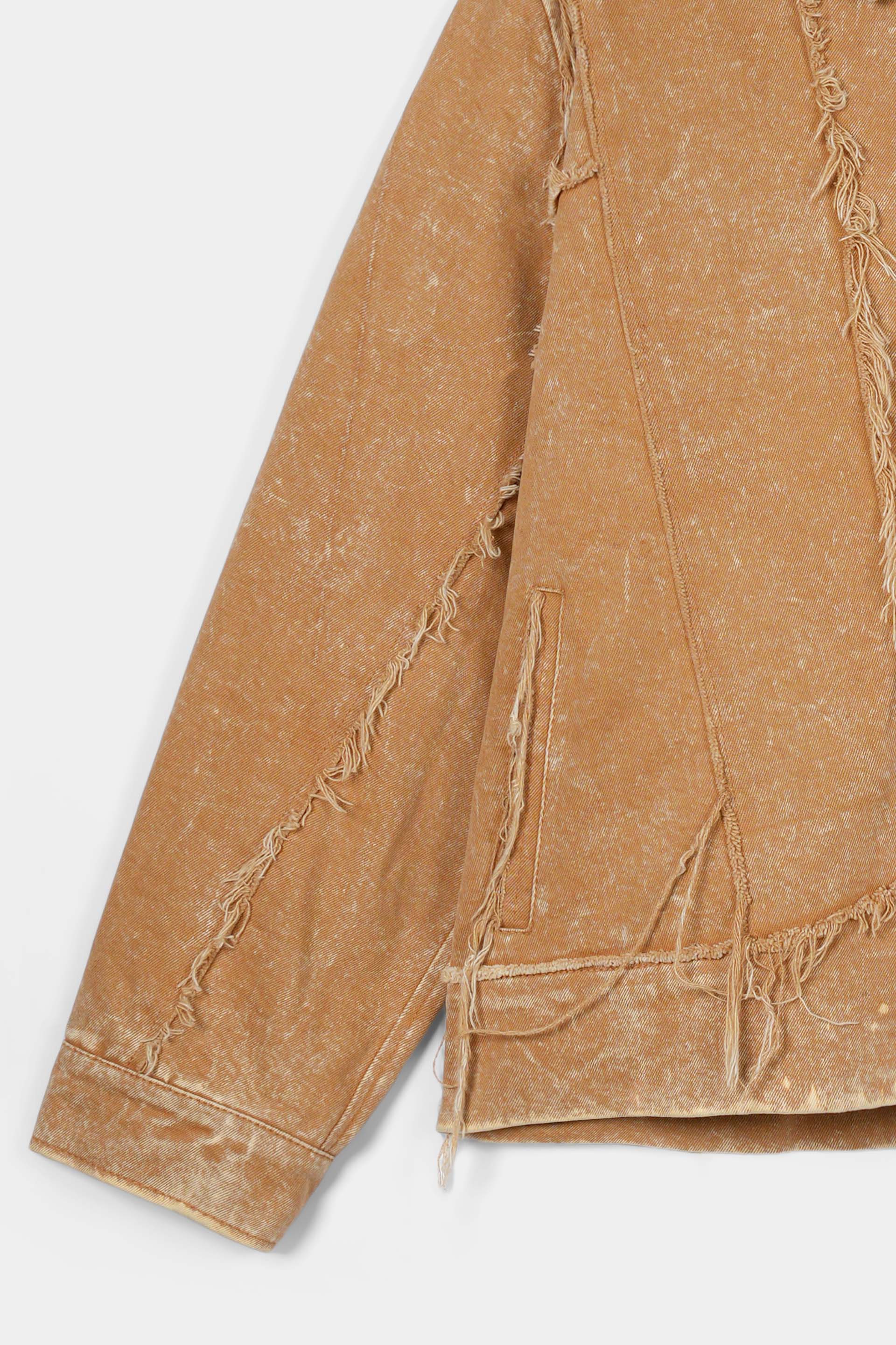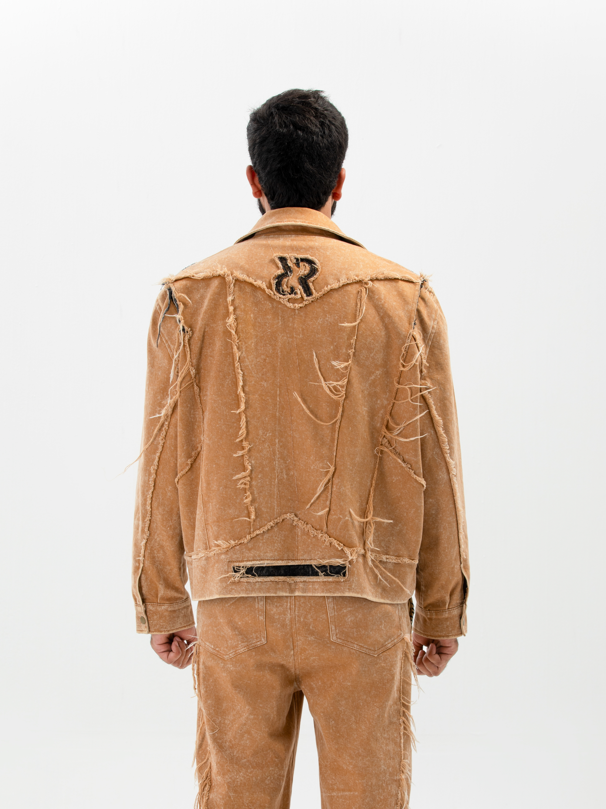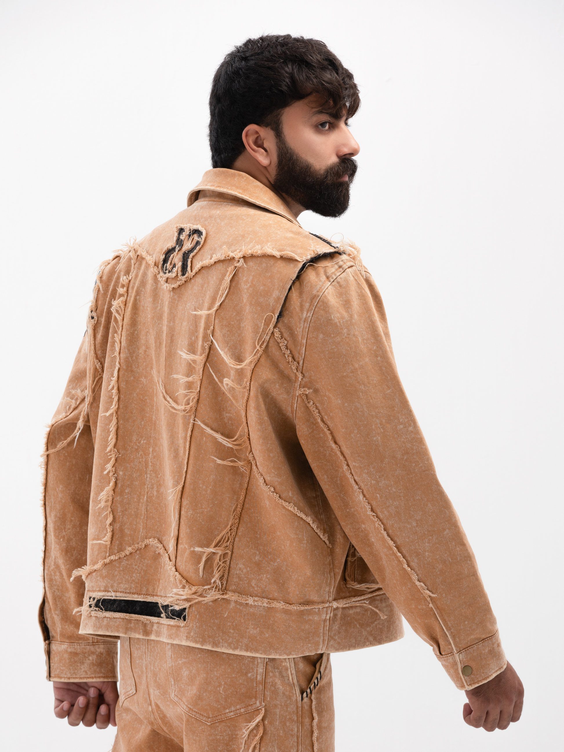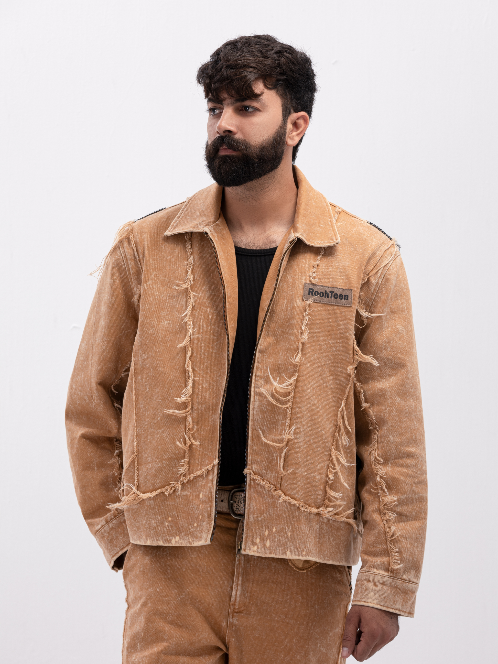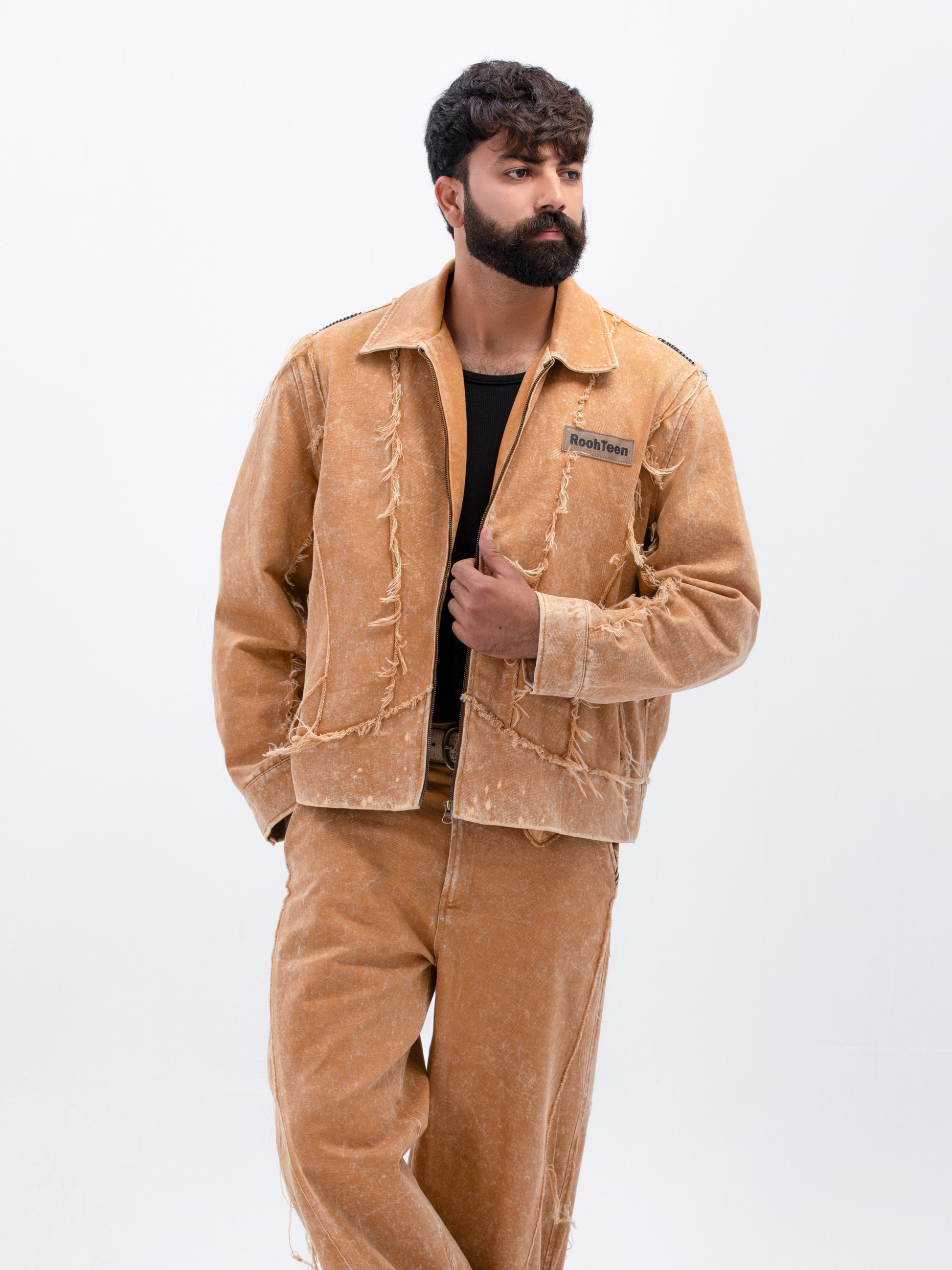 جاكيت جينز بلون الخردل، مُغسول بالحمض، بتفاصيل ممزقة ودرزات ثقيلة مهترئة، لإطلالة عصرية جريئة. يتميز برقعة شعار RoohTeen جريئة في الخلف، وبطاقة اسم في الأمام لإضفاء لمسة مميزة على الماركة. مصمم بقصة مريحة مع لمسة نهائية مغسولة بلمسة عتيقة.