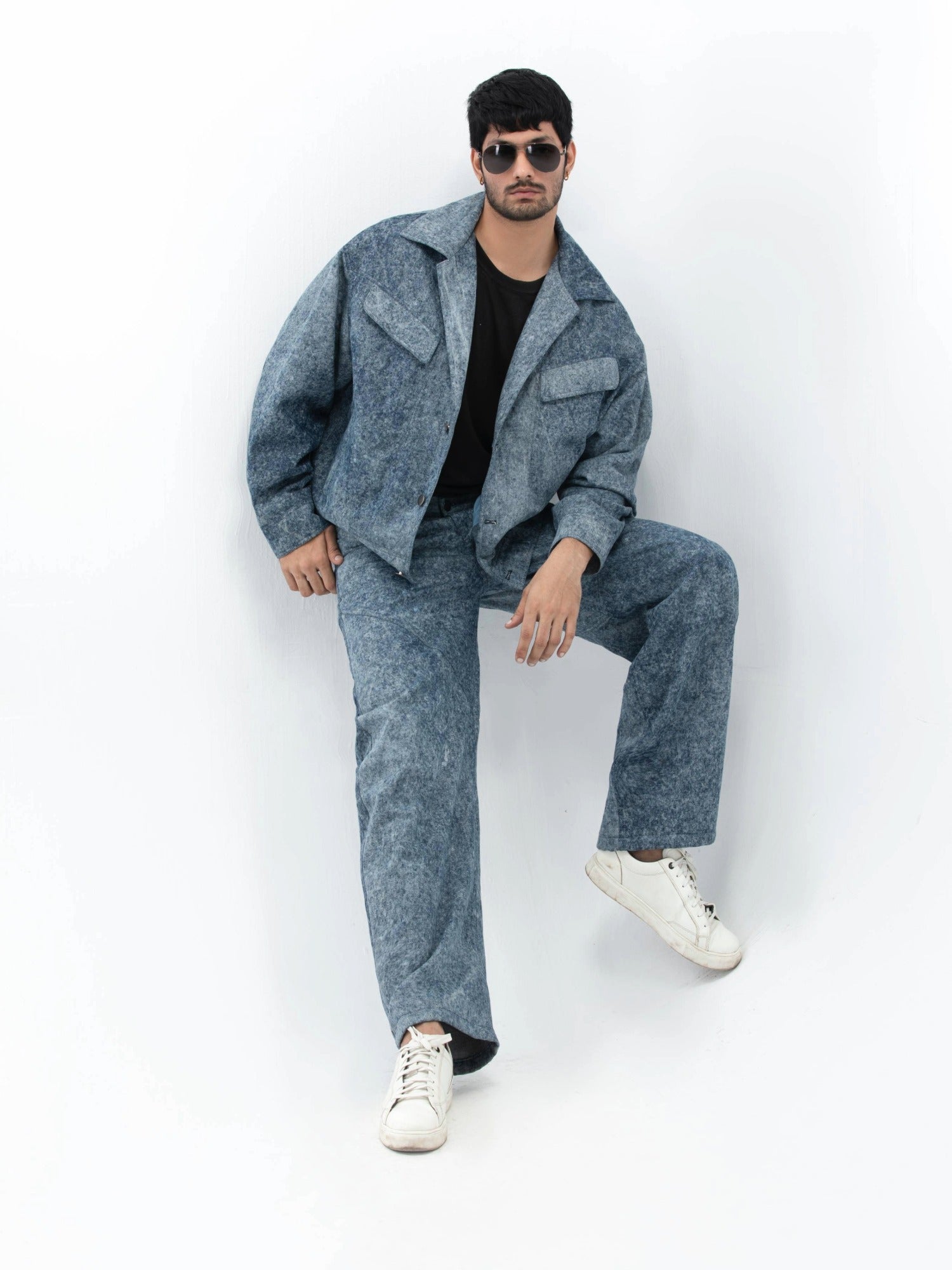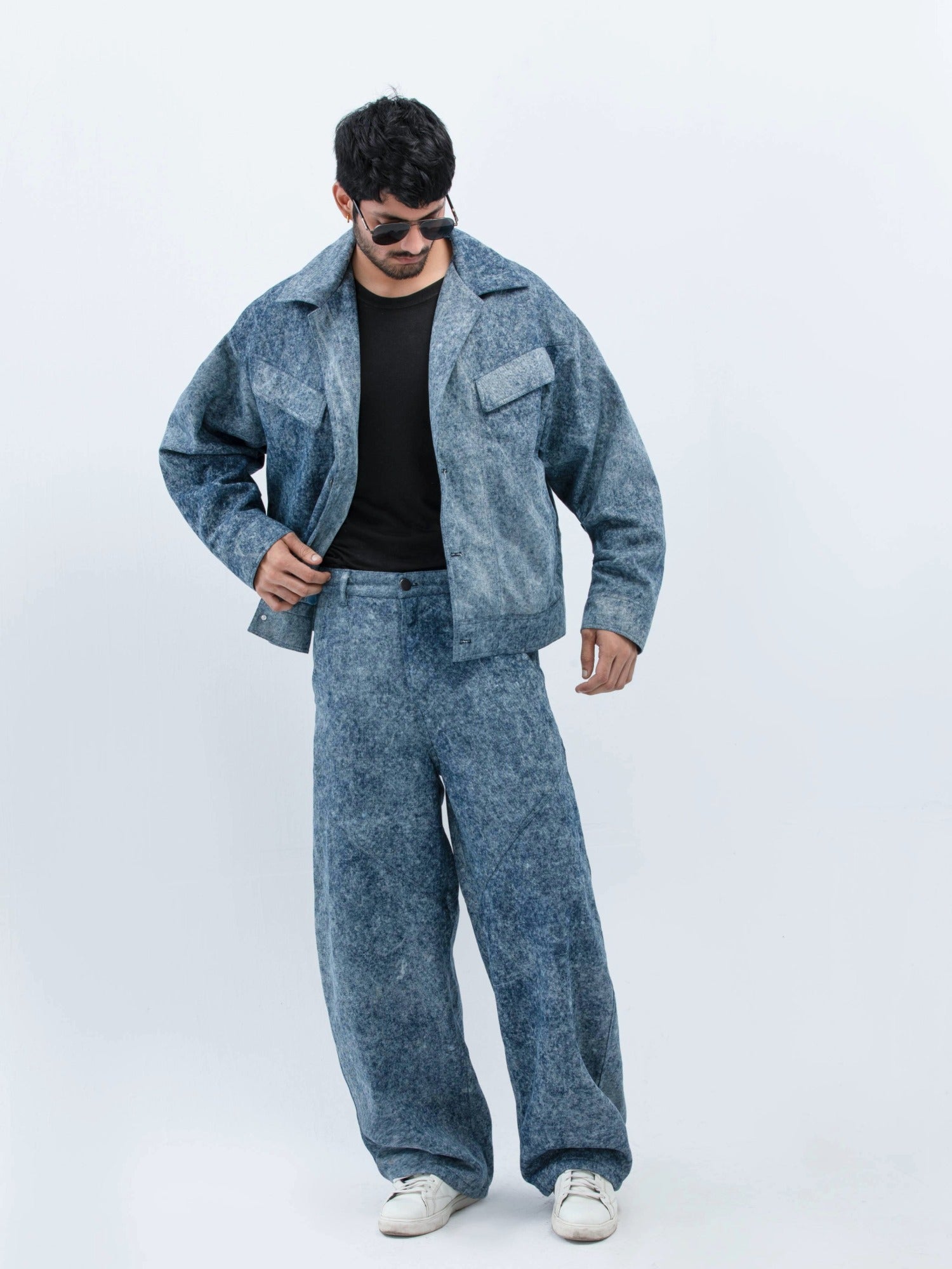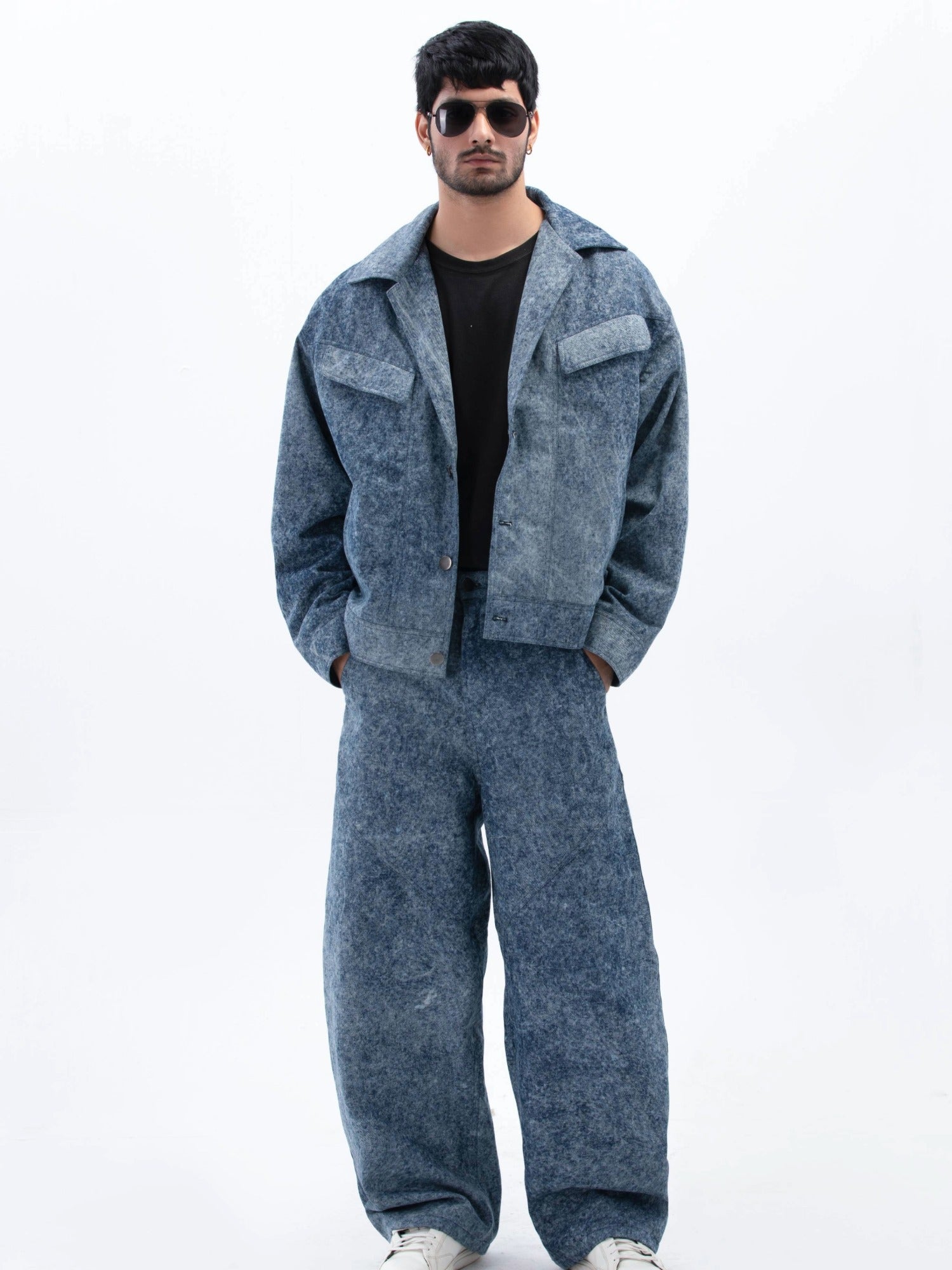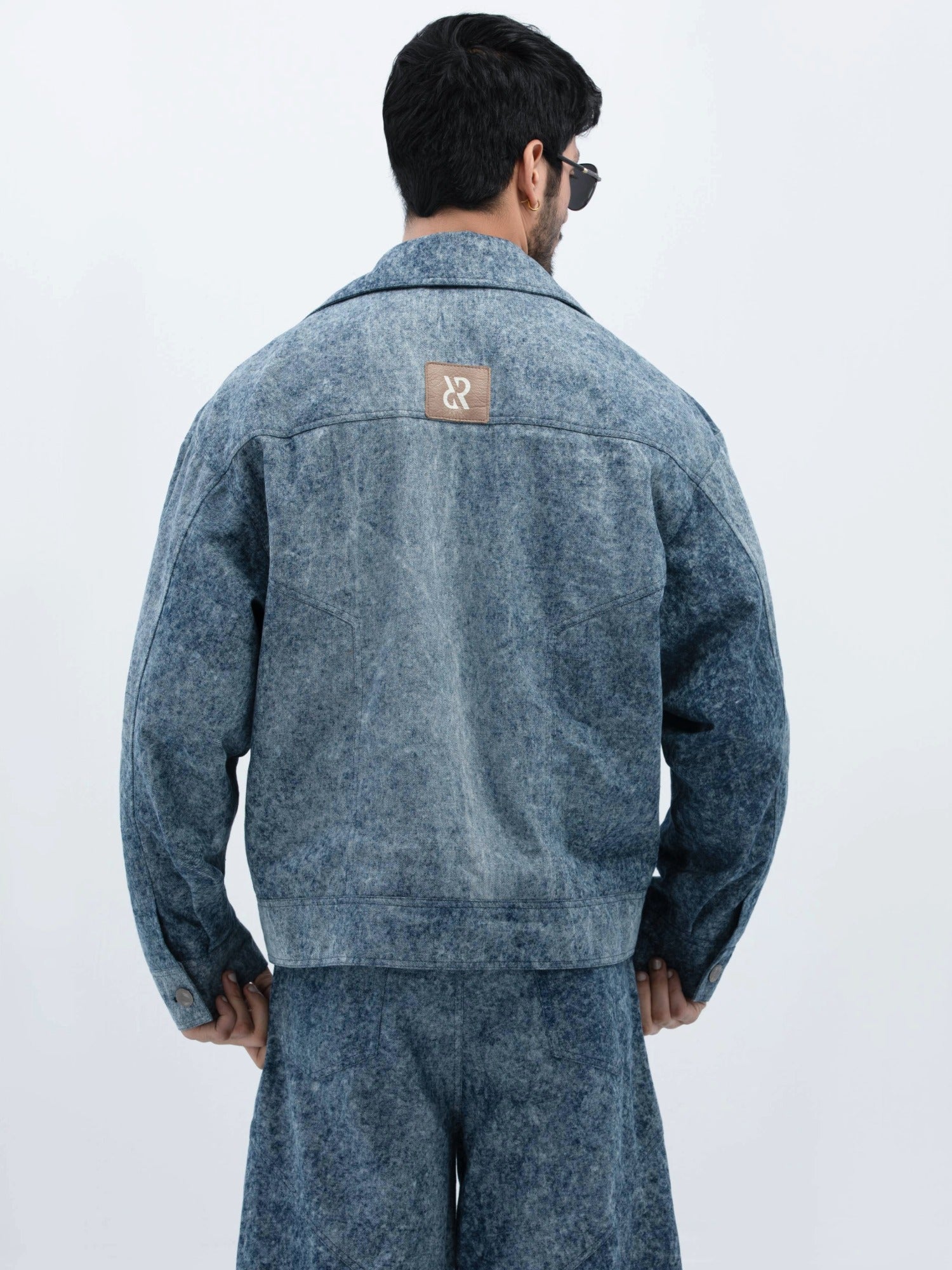 جاكيت جينز مريح مصنوع من قماش مغسول بالأحماض، مصمم لإطلالة كلاسيكية أنيقة. مصمم بأكتاف عريضة وجيوب بغطاء وإغلاق أمامي أنيق لإطلالة عصرية بسيطة. مزين بعلامة روهتين الجلدية المميزة في الخلف لإضفاء لمسة راقية.
