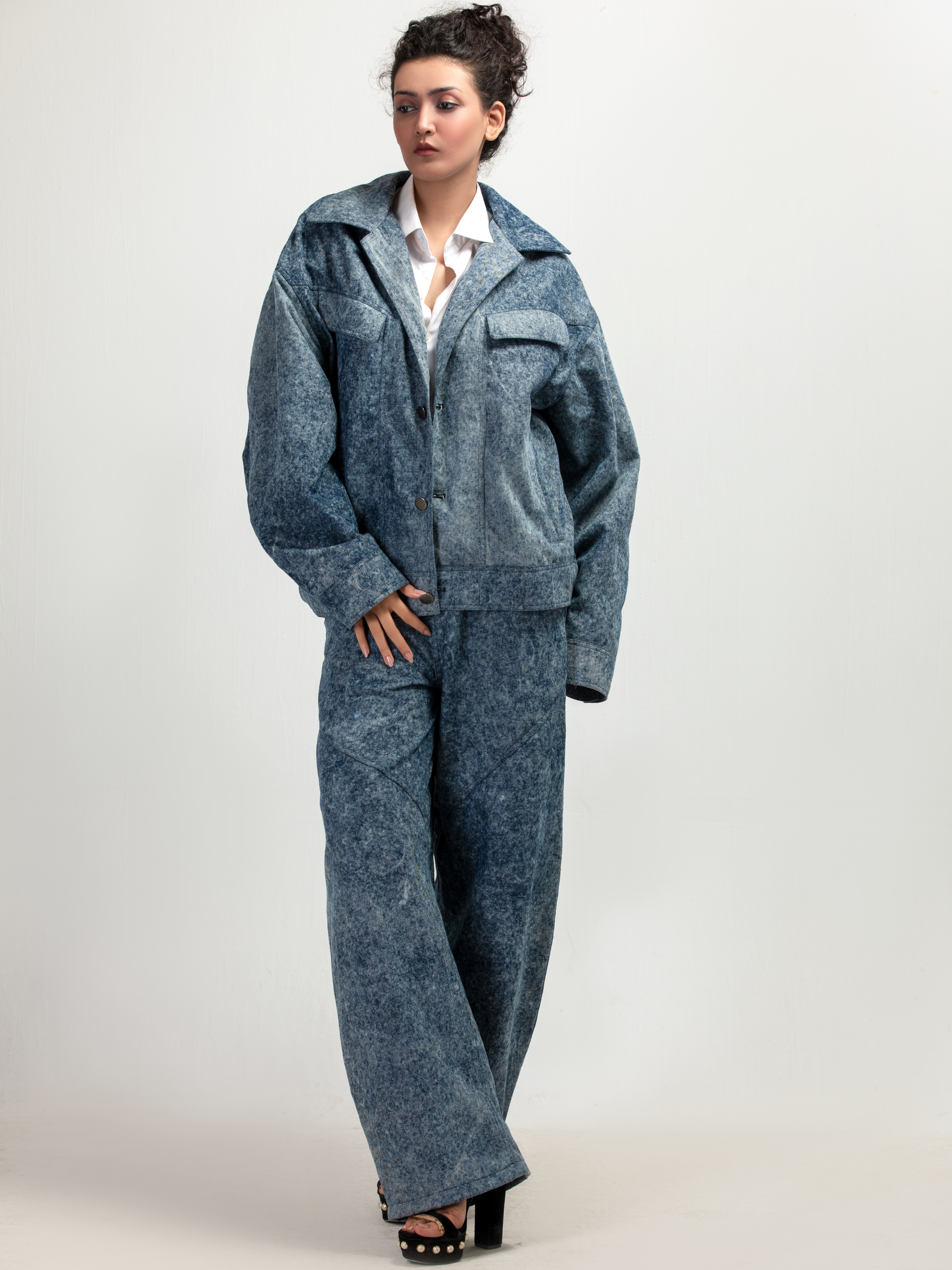 • قماش الدنيم الثقيل مع غسيل حمضي بملمس الحجر